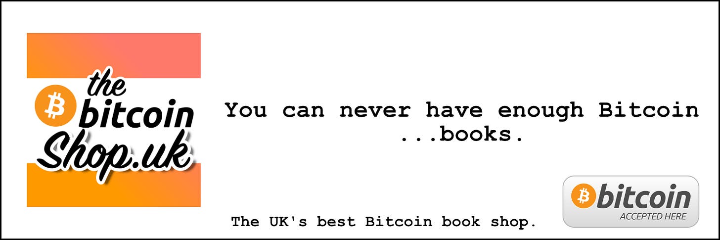 Bridge2Bitcoin at the Hospitality Tech Expo: Join Bridge2Bitcoin as they once again take on the normie world at the Hospitality Tech Expo at London’s ExCel. They’ll be there all day on Tuesday, the 15th, and Wednesday, the 16th; entry is free. Use this opportunity to learn how to talk to businesses about the benefits of accepting Bitcoin, or just come along for a chat with some fellow Bitcoiners. Find them at stand G45. Afterwards, they’ll all be heading to Boom Bap Burger.