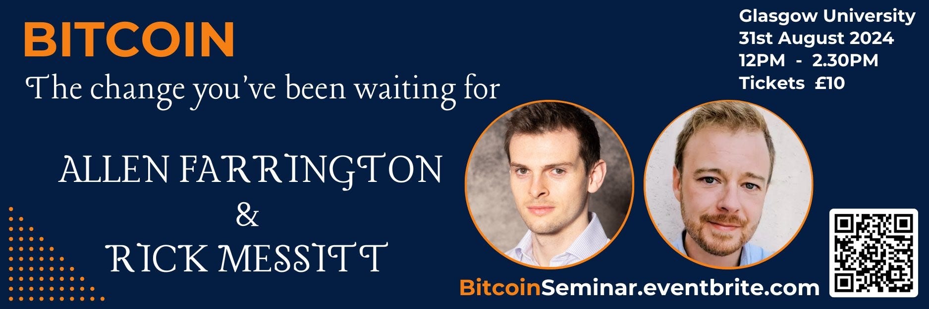 Bitcoin - The change you’ve been waiting for: Mark your calendars for August 31 at 10:30 am for “The Change You’ve Been Waiting For” at Glasgow University Union. This seminar, costing £10, focuses on Bitcoin’s transformative potential. With Bitcoin impacting individuals and businesses globally, understanding it is crucial. Guest speaker Allen Farrington will share his expertise, making this event perfect for both seasoned investors and the Bitcoin-curious. Don’t miss this opportunity to explore how Bitcoin can shape your financial future.